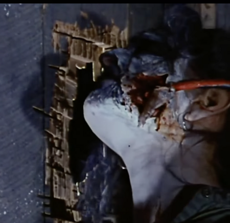 Кадры из «Documentary- THE EVIL DEAD.- 1981- BEHIND THE SCENES» Демонстрация убитого зомби и смесь для искусственной крови