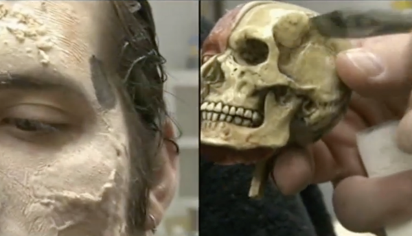Кроме того, передняя часть грима была съемной, её зачастую снимали во время снятий дальних планов, а для крупных надевали обратно. На постпродакшене все недостающие части были добавлены обратно.