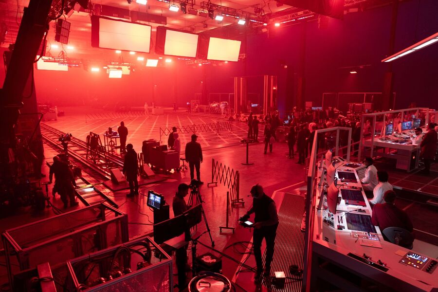 В итоге вдохновением стала технология 3D-печати. На экране возникает структура, похожая на поддерживающие элементы, которые формируются внутри печатаемой модели. Лазеры «выращивают» эти опорные конструкции, и внутри них постепенно проявляются напечатанные человеческие фигуры, программы или техника, материализующиеся в реальном мире. Результат получился зрелищным: глубокие тени, вспышки, искры, лучи лазеров — настоящая научная фантастика в её лучшем проявлении.