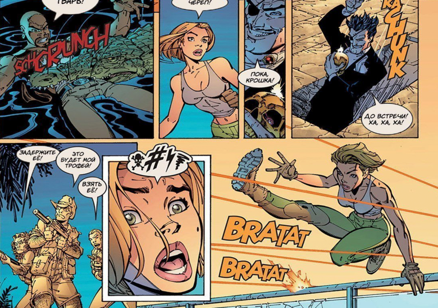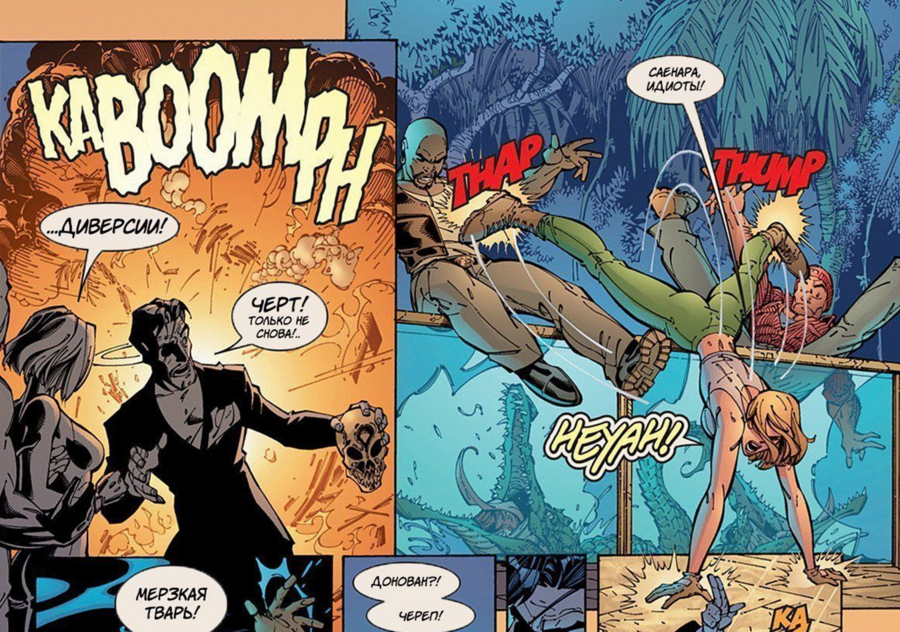 Звуковые эффекты редко заходили друг на друга и на само изображение вне текстового баббла. Это сохраняло аккуратность, но сбавляло динамику происходящего.