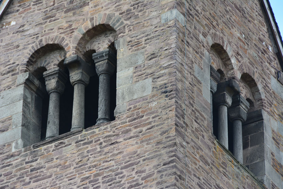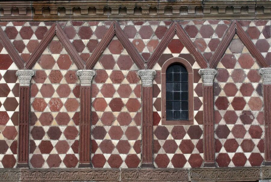 Детали Лоршской капеллы: мозаика, полуколонны, арки