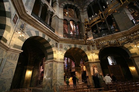 Капелла Карла Великого (Палатинская капелла). Интерьер. Архитектор Одон Мецский. Ахен, Германия.