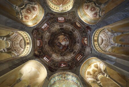 1.Восьмиугольные арки, которые держат купол; 2.Моисей, стоящий на Святой земле и пророк Исаия. Святой Матфей (вверху слева) и Святой Марк;