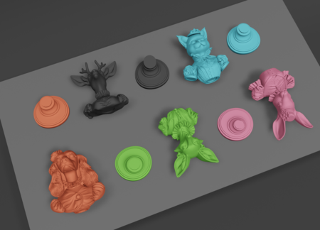 Было много висящих объектов, усложнявших печать — например, уши спаниэля изначально не касались плеч и имели дыры, а рукава зайчихи были полые и со сложной внутренней геометрией. Решить эту проблему удалось через скульптинг и remesh modifier — из-за новой сетки модели потеряли текстуры, но в них уже нет необходимости на этапе печати.
