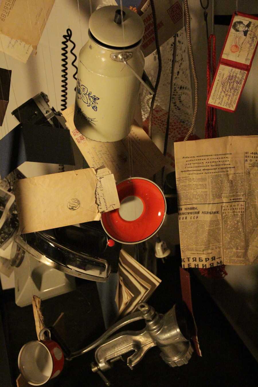 Предметы характеризуют быт того времени. Например, сервиз, который символизирует отложенную жизнь. Они зависли во времени и пространстве.