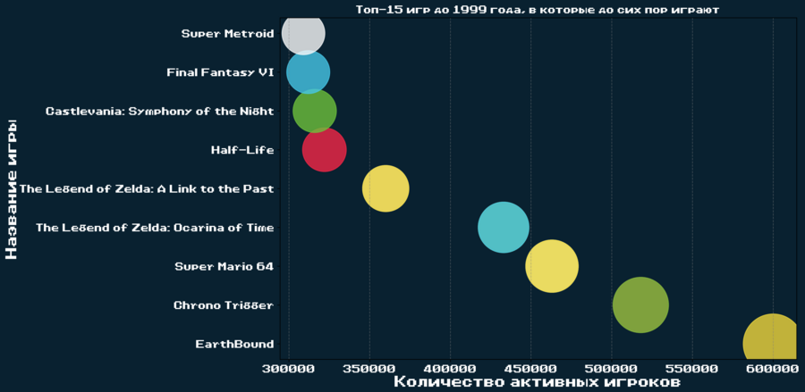 А этот график позволил понять, что у старых игр до сих пор очень большая аудитория. Многие игры, такие как Zelda или Half Life остаются культовыми.