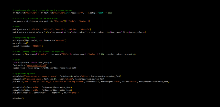 Ссылка на блокнот и датасет: https://drive.google.com/drive/folders/1p3hqFqLhb6LvIXRY7wcmKZWEP6gYyES1?usp=sharing Ссылка на датасет в Kaggle: https://www.kaggle.com/datasets/arnabchaki/popular-video-games-1980-2023