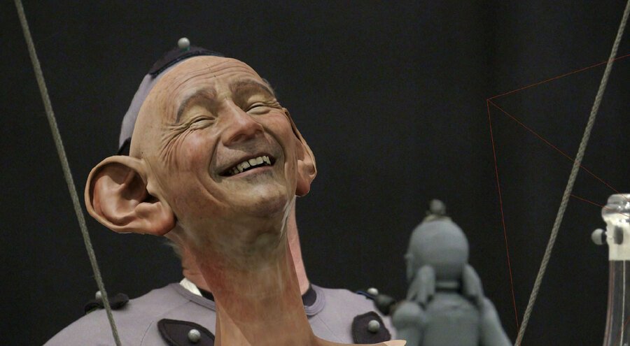Чтобы обеспечить подвижность и мимику некоторые маски были оснащены дистанционно управляемыми механизмами, спрятанными под париками.