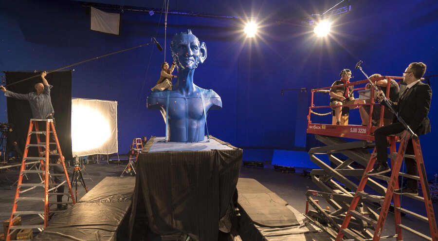 Затем Weta Digital обрабатывала данные, перемещалась в виртуальную камеру в специально отведенном месте на съемочной площадке, где Стивен применял полученную информацию с игрой актера к грубой 3d-модели БДВ.