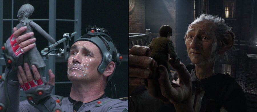 Технология «Performance Capture System» позволила обойти ограничение в различии масштаба, которое возникало при привычном «motion capture» . Запись происходила в несколько этапов захвата движения (сначала великана в обычном масштабе, потом Софи в гораздо большем сете, чтобы она казалась меньше ростом). Самым удобным было то, что при съемках лайв-экшена завершенный мокап с Марком появлялся на мониторе камеры и воспроизводился в реальном времени.