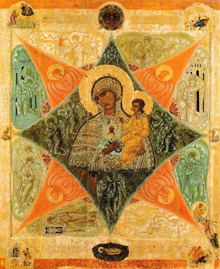 Икона Богоматери «Неопалимая купина». Кон. XVI в.