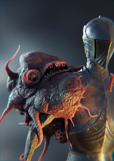 После скульпта 3D модели обладают слишком плотной и неправильной сеткой, не подходящей для дальнейшей разработки персонажа. На этом этапе я тщательно переработал каждую деталь брони, максимально уменьшив количество полигонов и не потеряв форму объекта.