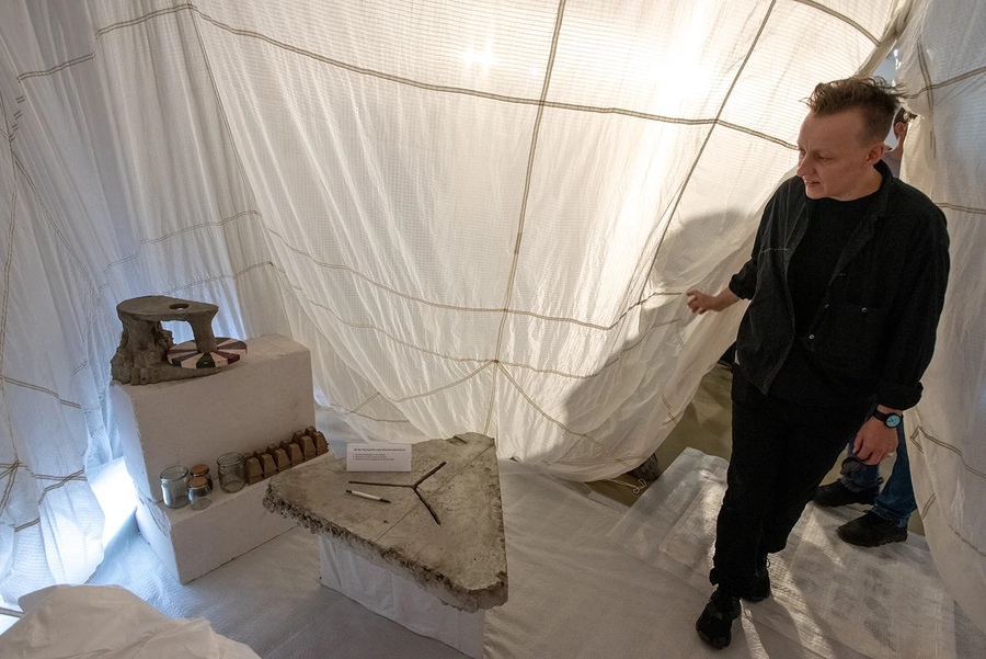 Пространство зала «Открытых студий» в ЦСИ Винзаводе, работы Мары Пилясинской