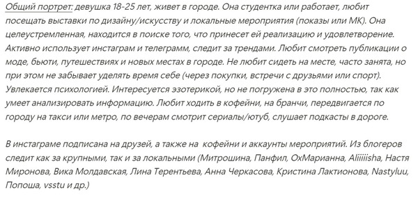 Заключительные замечания: ожидания со стороны бренда от описанной рекламной кампании: выполненные цели из п. 2 + прирост аудитории до 1000 человек, распродажа старой коллекции и спрос на новую.