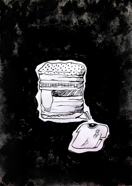 Дневник наблюдений за жизненным циклом одежды. Как меняется форма, пластика и текстура вещей после загрязнения, стирки и сушки? Также целью зина является передать атмосферу стирки (через предметы быта) и показать цикличность процесса.