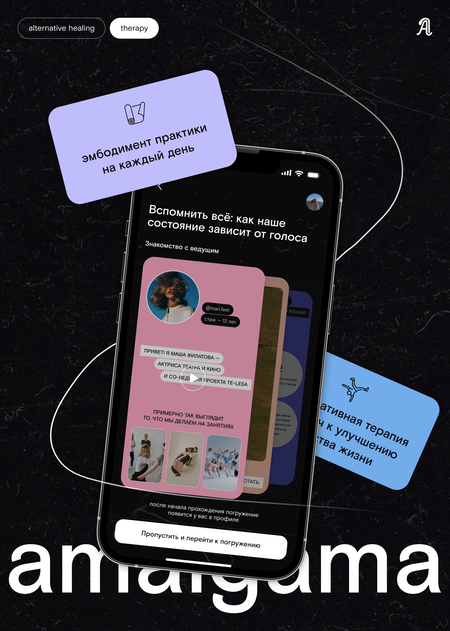 Amalgama — сервис, упрощающий знакомство с практиками альтернативной терапии. Мы делаем эмбодимент-практики доступными каждому, и создаем безопасное пространство для желающих попробовать новое. Теперь ближайшие занятия по любимым направлениям всегда под рукой.