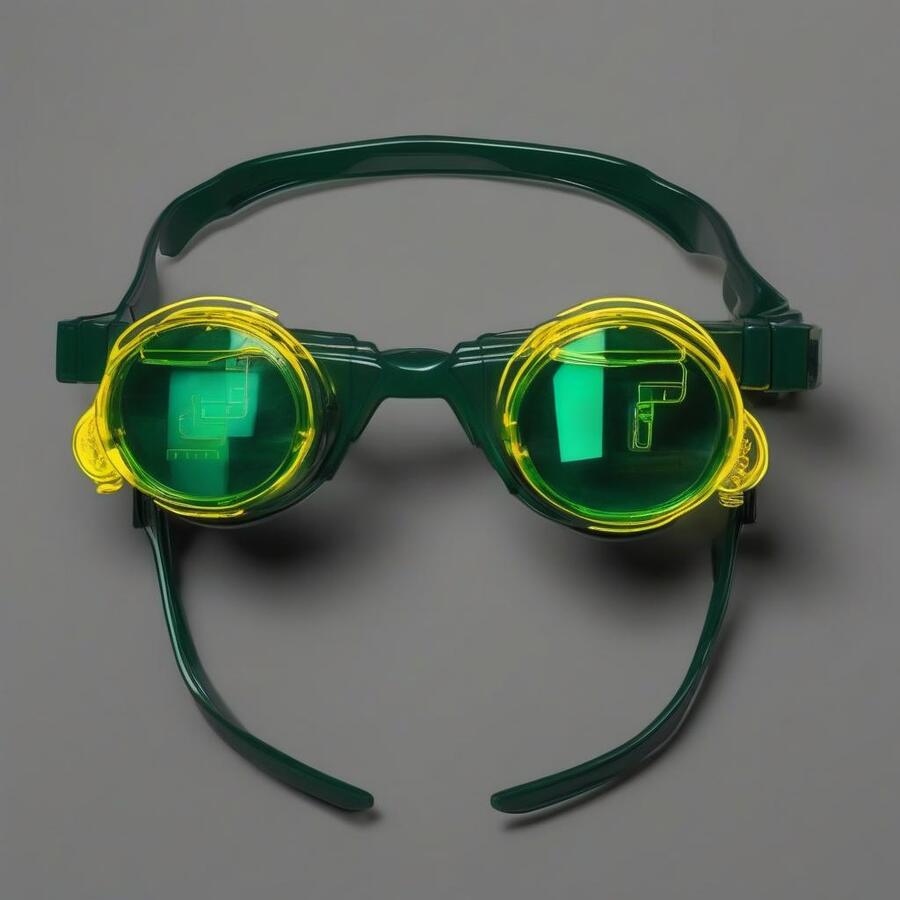2. model of modern dark green with yellow glowing details glasses in cyberpunk style