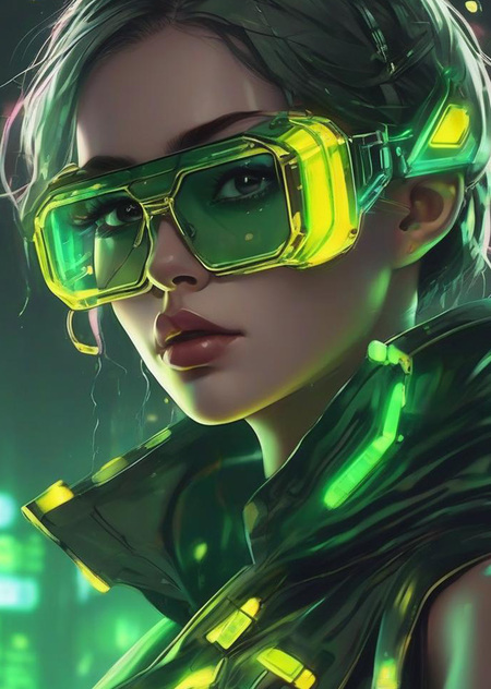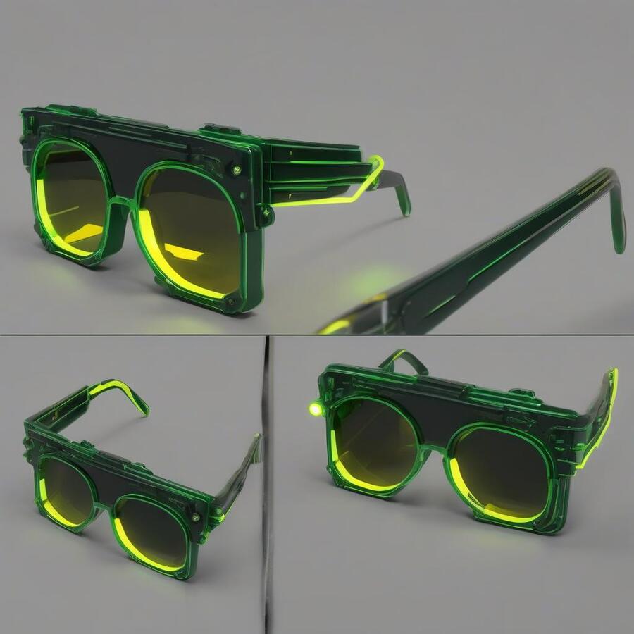 1. modern dark green with yellow glowing details glasses in cyberpunk style