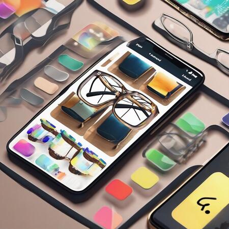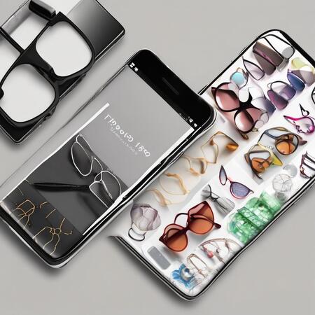 3. phone. on the screen is an app. app with a lot of different designs of glasses