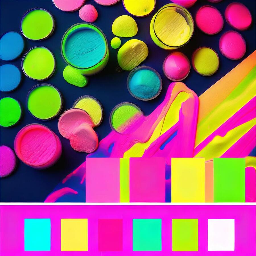 5. color palette for design without any additional drawings, with neon green, neon blue, neon pink and neon yellow colors in it. Palette is for branding purposes and contain only five colors in it
