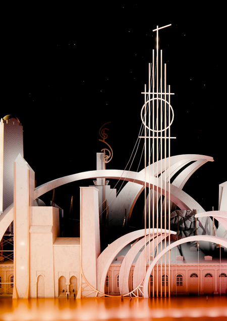 Добро пожаловать в мир советского авангарда, где кино становится архитектурной утопией! Сегодня мы рассмотрим сценографический фасад, вдохновленный культовым фильмом «Аэлита» (1924) — первым в истории советским научно-фантастическим кино.