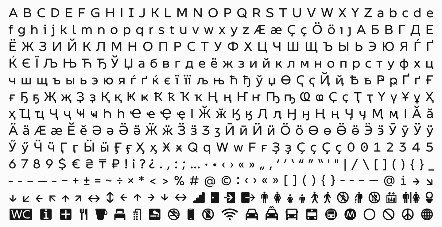 Пиктограммы являются неотъемлемой частью проекта. Они наследуют графику букв и ещё больше расширяют возможности шрифта