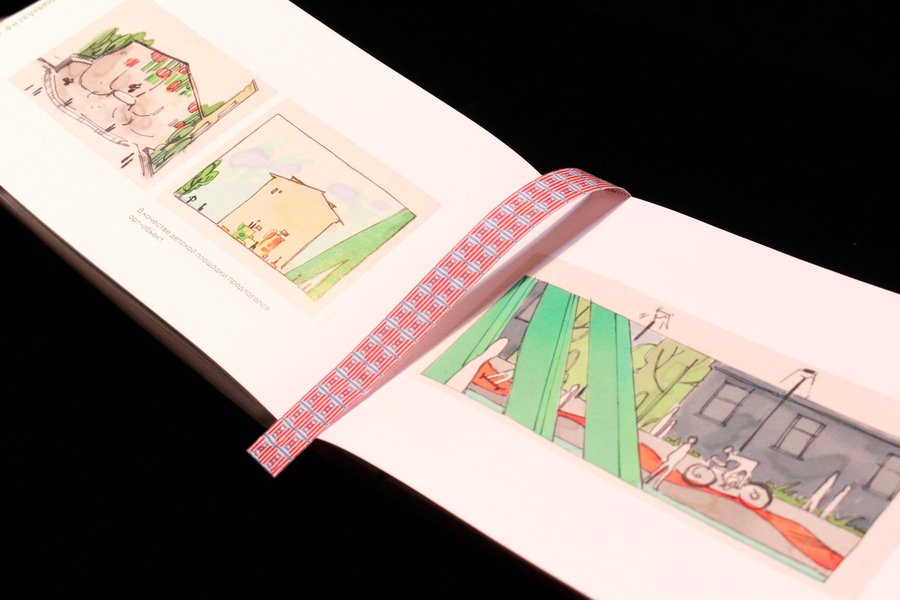 // сделана тканевая закладка.