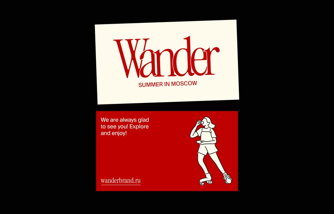 Wander Brand — специализированный бренд, рассказывающий через свою продукцию истории в микро-локальном масштабе с городских улиц по всему миру. Пилотная капсульная коллекция: «Summer in Moscow»