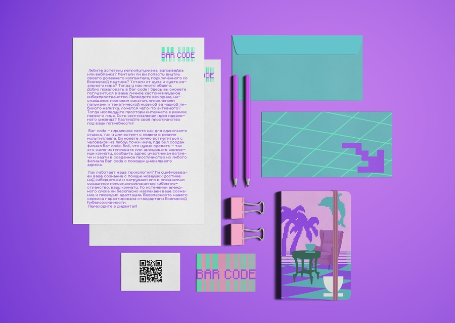Окунитесь в бескрайнее пространство интернета в представлении человека, только начинающего знакомство со Всемирной паутиной. Отдохните от реального мира в киберпространстве бара BAR CODE за чашкой любимого напитка.