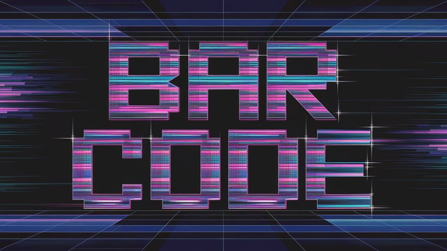 Prompt: A stylized, retrofuturistic digital cyberpunk typeface font for «BAR CODE», the words composed of vibrant, neon-colored pixels, with a distressed, glitch-art aesthetic, evoking a sense of futuristic decay, with hints of purple and blue hues, the font bold, sans-serif, and slightly distorted, as if projected from an old cathode ray tube, with subtle scan lines and fake digital noise, giving it a worn, vintage computer screen feel, the overall design radiating a sense of nostalgia and tech-noir flair.