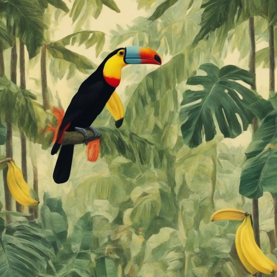 В большинстве случаев нейросеть справляется с изображением животных, создавая убедительные, стилизованные образы. Иногда возникают сбои (отсутствие лапок, деформированные головы или смешение объектов — например, превращение тукана в банан), но это можно считать частью природы генеративного процесса.