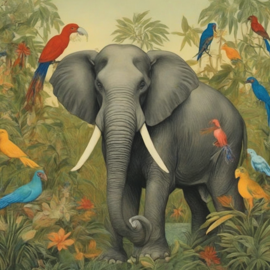 Результатом проекта стали сгенерированные нейросетью изображения, отсылающие к творчеству Анри Руссо — наивной живописи с характерной дымкой, декоративной плоскостностью и особым отношением к деталям природы.