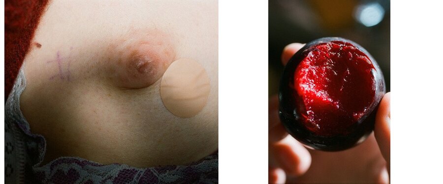 Дэни фотографирует с помощью пинхола из своей вагины. Таким образом, она не только меняет точку субъективного взгляда на отрывок реальности, она буквально становится самой камерой. Точка съемки отсылает не только к образам начала, слияния и материнства, но и создает новую связь между ней и ее партнером.