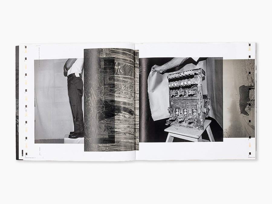Фотокнига обретает динамику за счёт композиционных наслоений. Сохраняя ритмику и баланс между заполненными разворотами и белым пространством, характерные для «Evidence» 1977 года, новое издание усложняет визуальный язык: теперь разворот строится не на паре отдельных фотографий, а на целых компиляциях. Помимо дополнительных изображений, создающих эффект случайного контекста, в композицию включаются текстовые элементы. Текст не просто поясняет визуальный ряд, но становится самостоятельной фактурой, добавляя новые смысловые слои и обогащая общее восприятие.