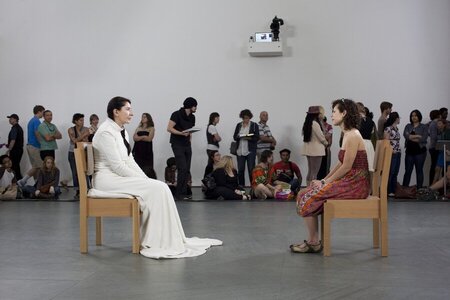 В присутствии художника [Электронный ресурс]: [фотография перформанса] / Марина Абрамович. — 2010. — URL: https://www.moma.org/calendar/exhibitions/964/installation_images/4978 (дата обращения: 23.11.2025).