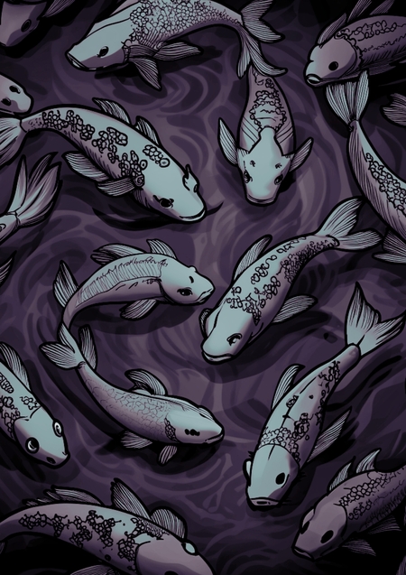 Серия AI иллюстраций «Кои не приносят удачу» — детского комикса о том, что коллекционирование живого несёт вред как существам, так и их владельцам.