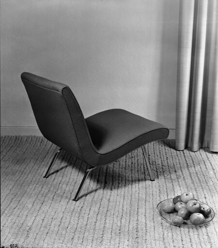 слева — дом Вальтера Гропиуса (1938г), Вальтер Гропиус, справа — кресло Votteler (1956г), Walter Knoll