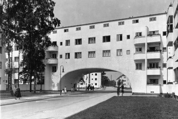 слева — жилой комплекс Сименсштадт (1934г), Walter Gropius, справа — диван 375(1950г), Walter Knoll