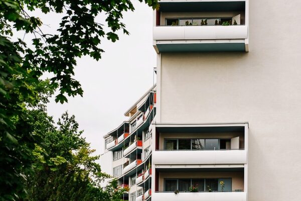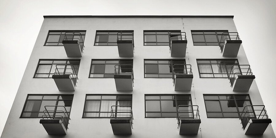 слева — жилой дом в Берлине (1956г), Walter Gropius, справа — кресло FK (1969г), Walter Knoll