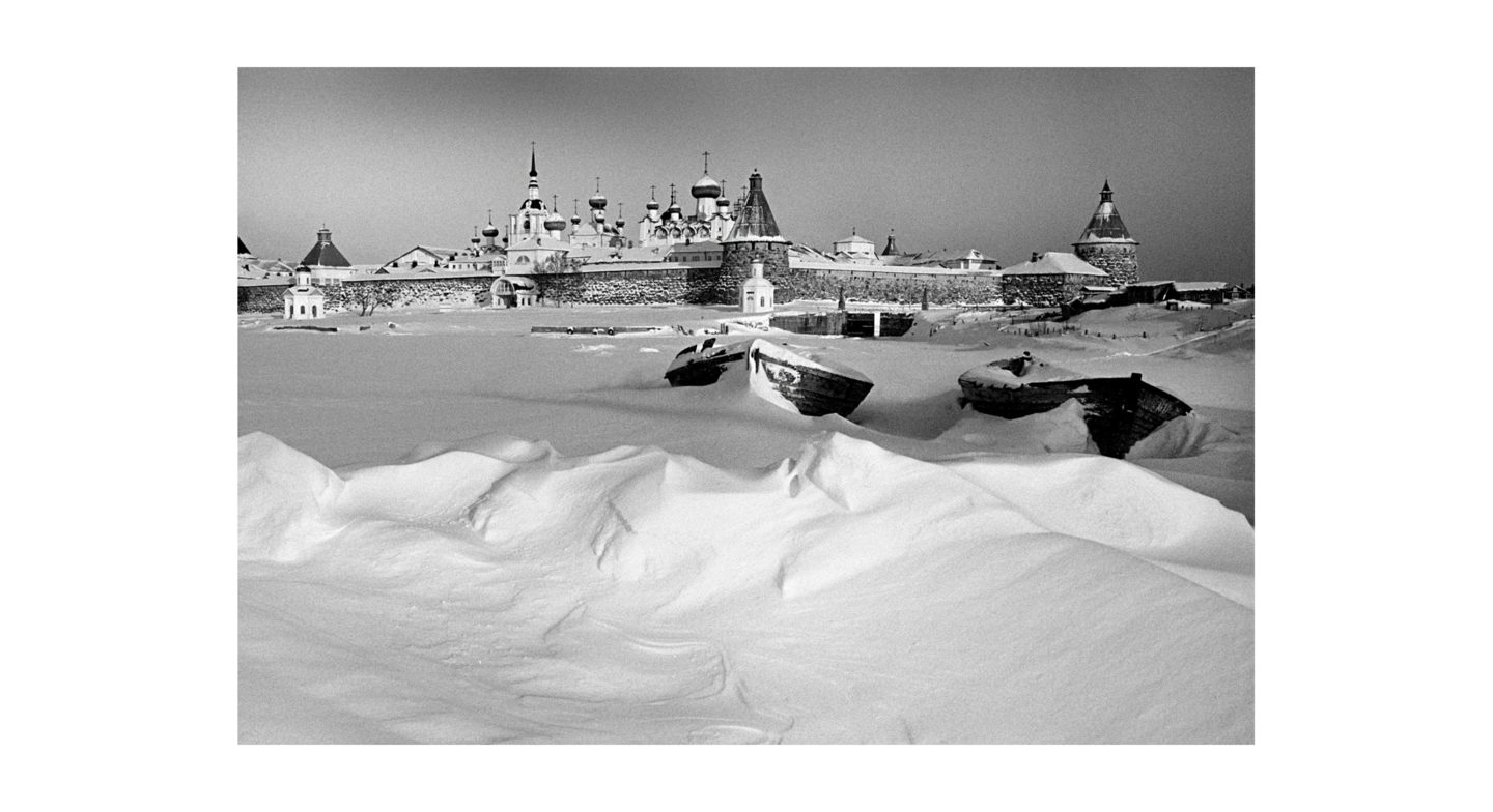 Серия «Русский Север» Георгия Колосова представляет собой визуальное осмысление северного ландшафта, в котором архитектура, природа и человеческие фигуры образуют вместе уникальную культурную среду.