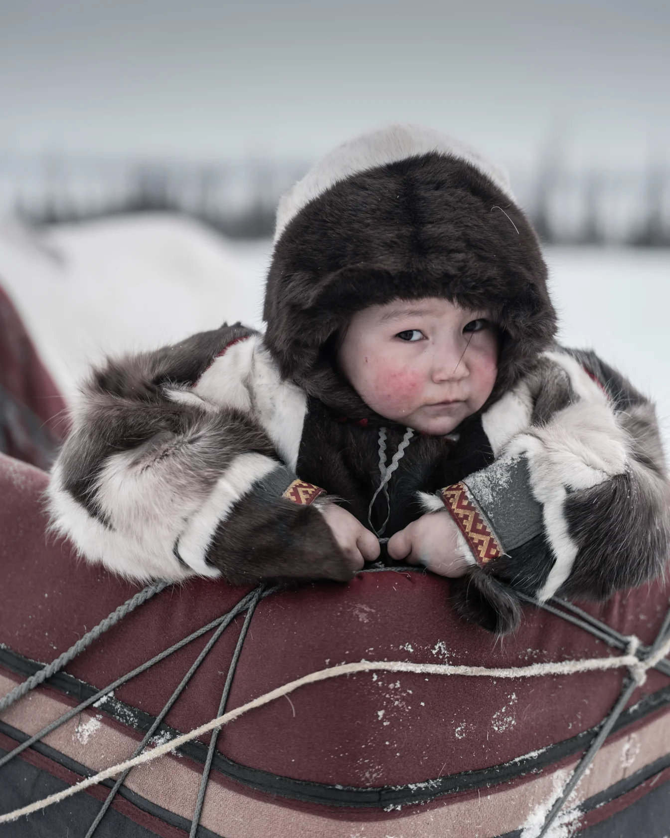 Её снимки выделяются яркой, но естественной цветовой палитрой, которая создаёт контраст между суровой снежной средой и внутренней теплотой реальных человеческих историй.