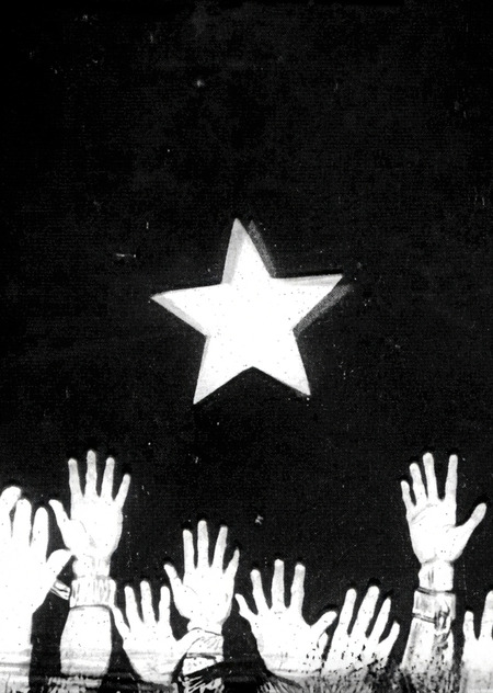 «Межпланетная революция» 1924 года продолжает тему победы нового мира, перенося её в фантастическое пространство. Красноармеец с красной звездой на шапке изображён как проводник истины и справедливости, его движение уверенное и целенаправленное, что подчёркивает связь с высшим идеалом и убеждённость в правильности пути. Особенно выразительно этот символизм проявляется в момент, когда звезда на его шапке сливается со звёздами космоса, превращая героя в часть вселенского порядка. Он выступает как воплощение силы, способной не только изменить Землю, но и распространить революционные ценности за её пределы.