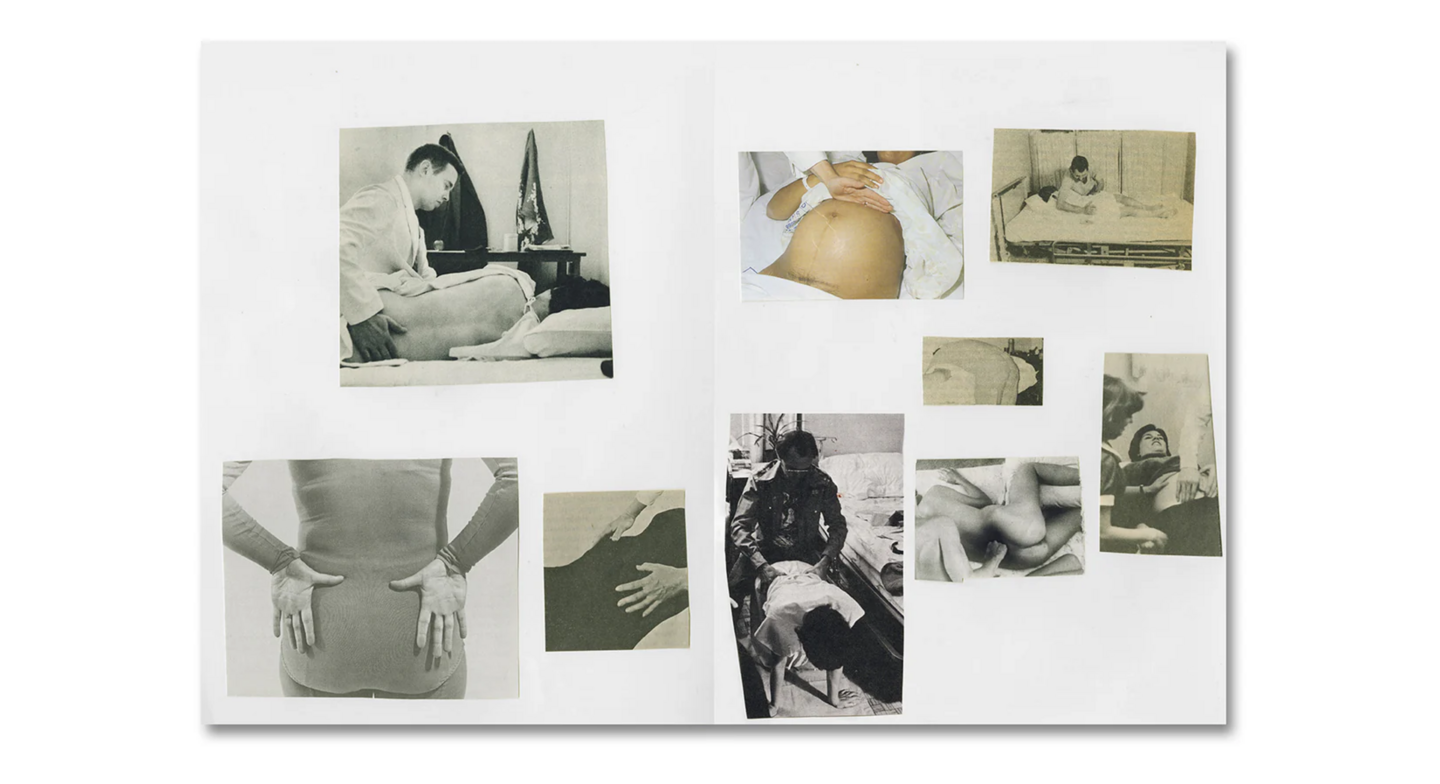Виннант создает мощный фотомонтаж из тысяч найденных изображений родов. Это не линейная история одного рождения, а коллективный нарратив.