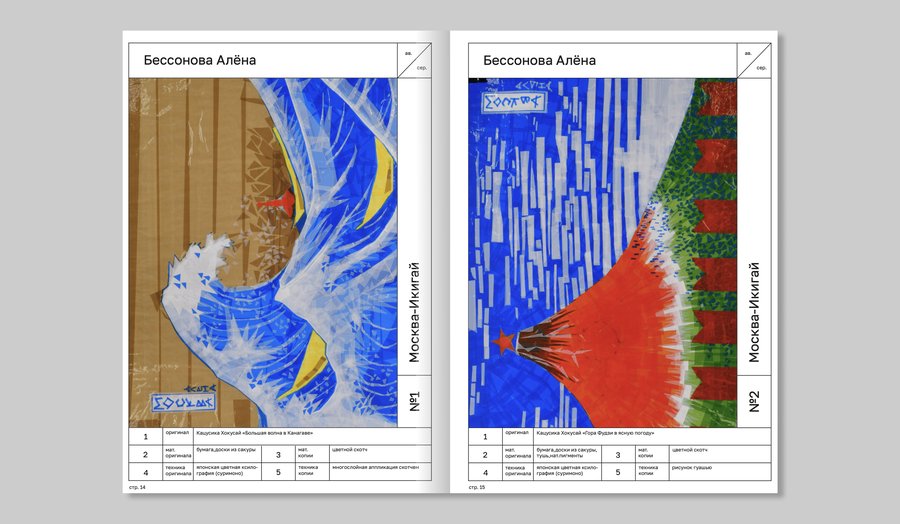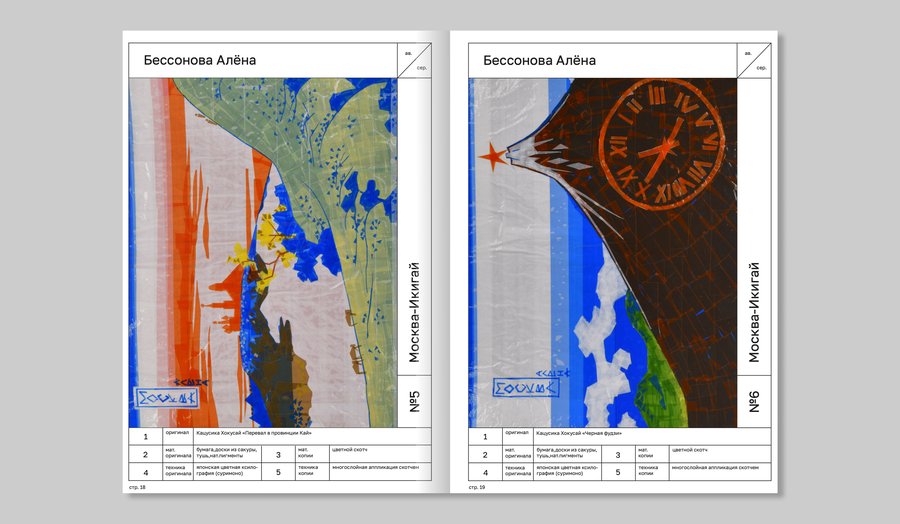 Используя неожиданный материал — цветной скотч — я создаю репродукцию знаменитых гравюр, где священная гора Фудзи, бывшая икигаем целой нации, замещается сердцем моего города — Московским Кремлем. Слой за слоем, полоса за полосой я собираю изображения, что перекликается с печатной техникой «укиё-э», но придает ей новый, тактильный и динамичный характер.