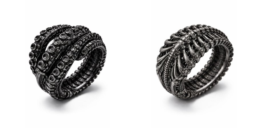 Серия биомеханических колец — это материализация границы между органическим и механическим, живым и искусственным.