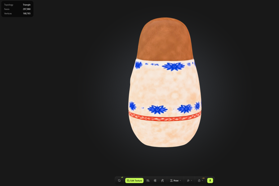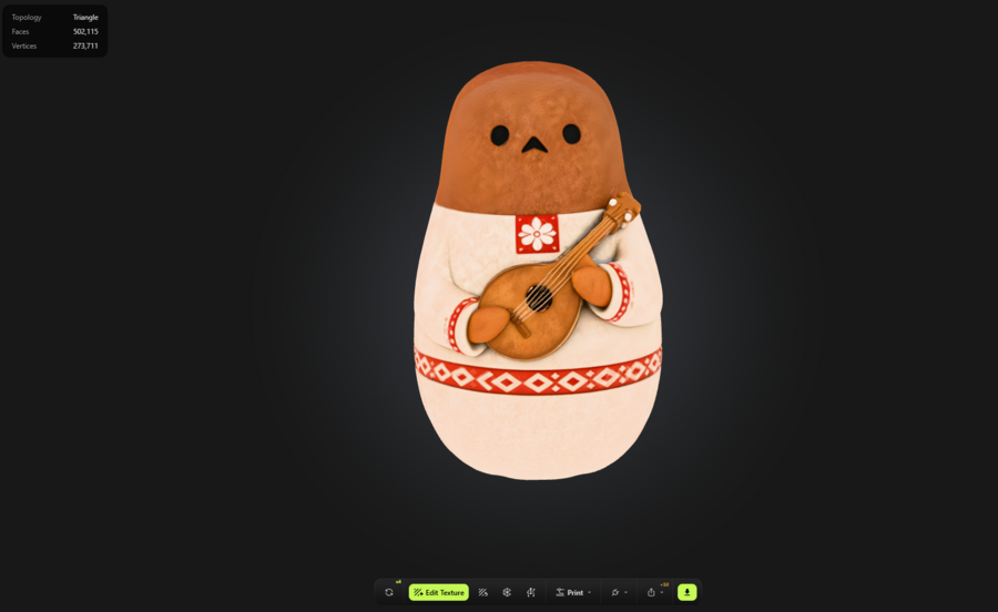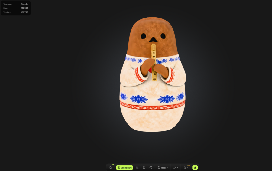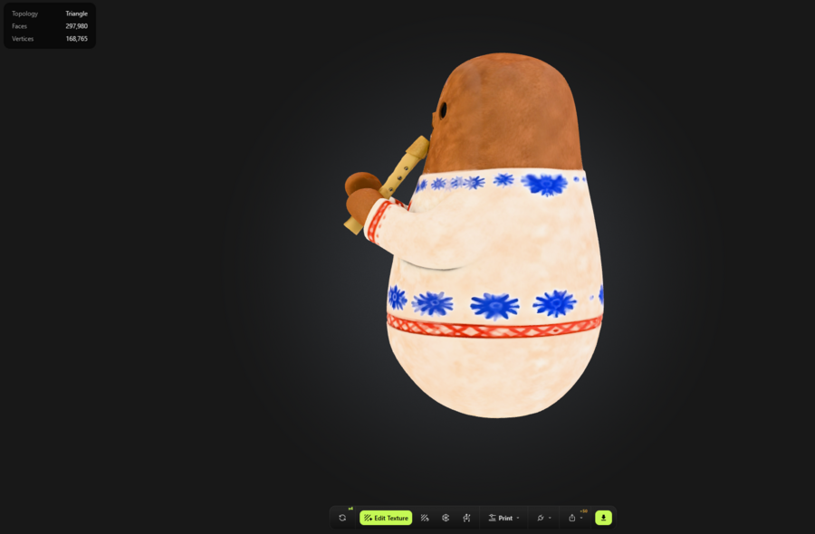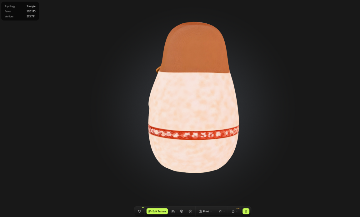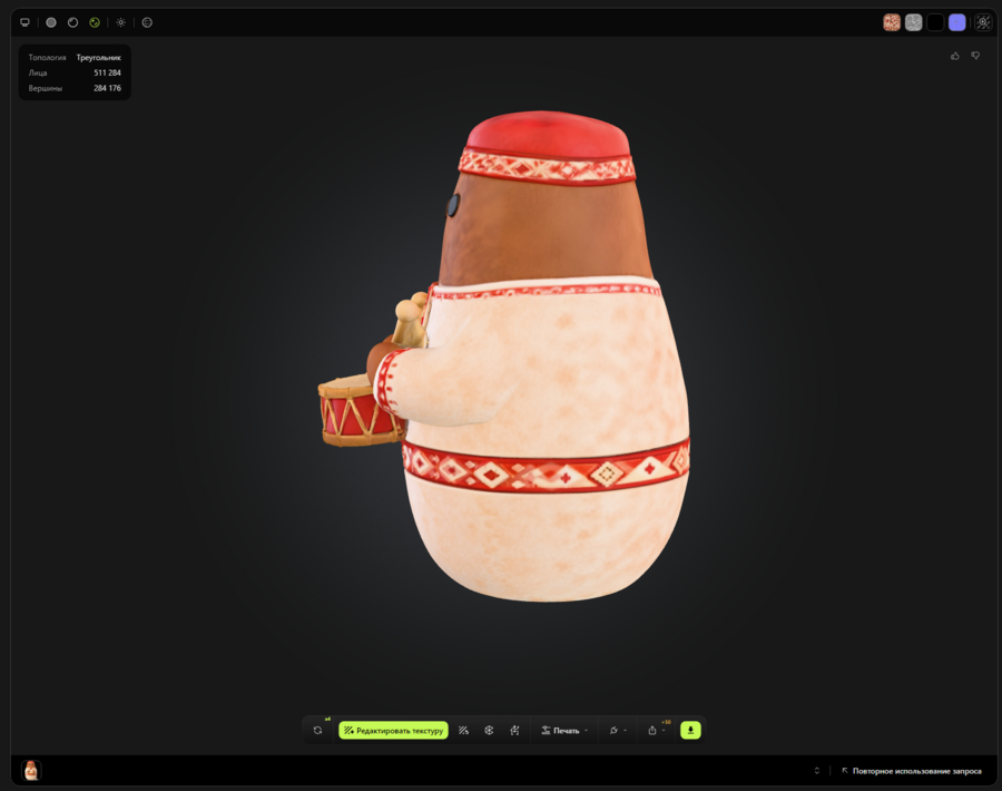 Далее, визуал этих фигур был загружен в нейросеть Meshy, где из эскизов получились объёмные модели.