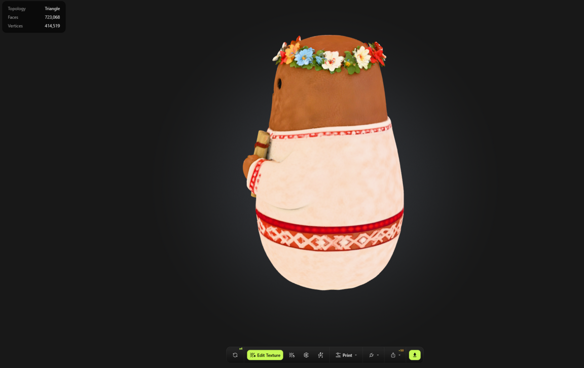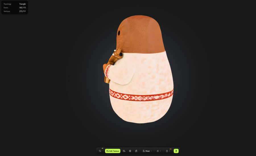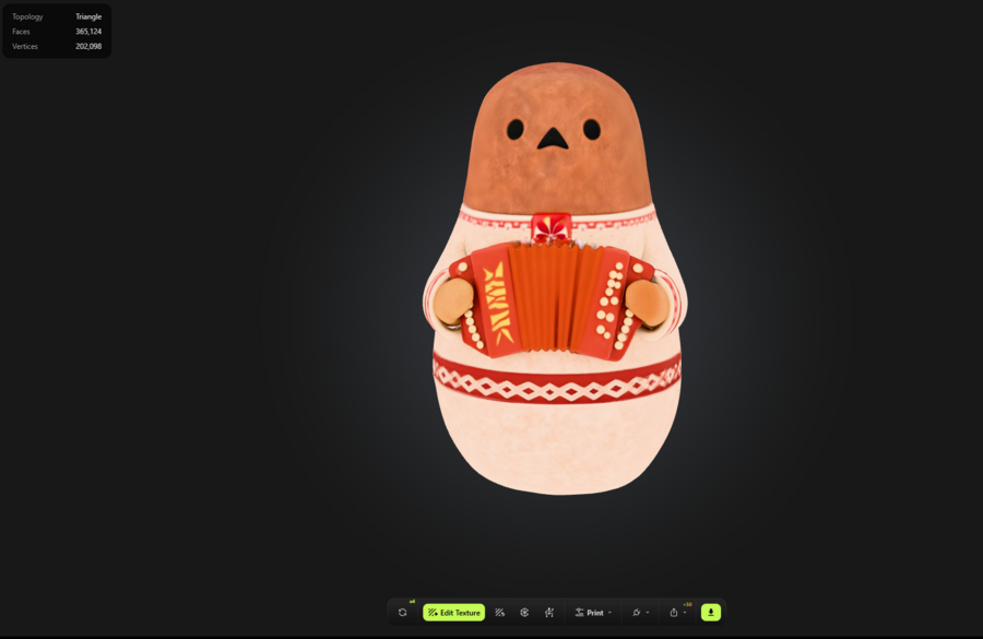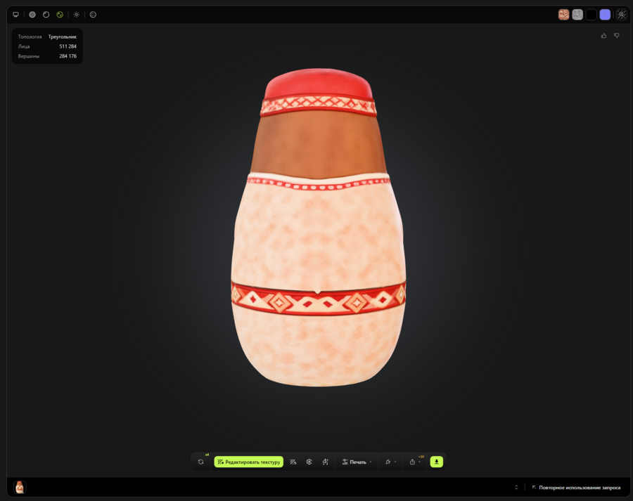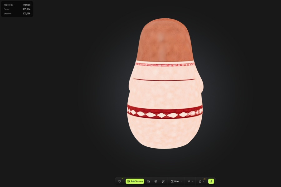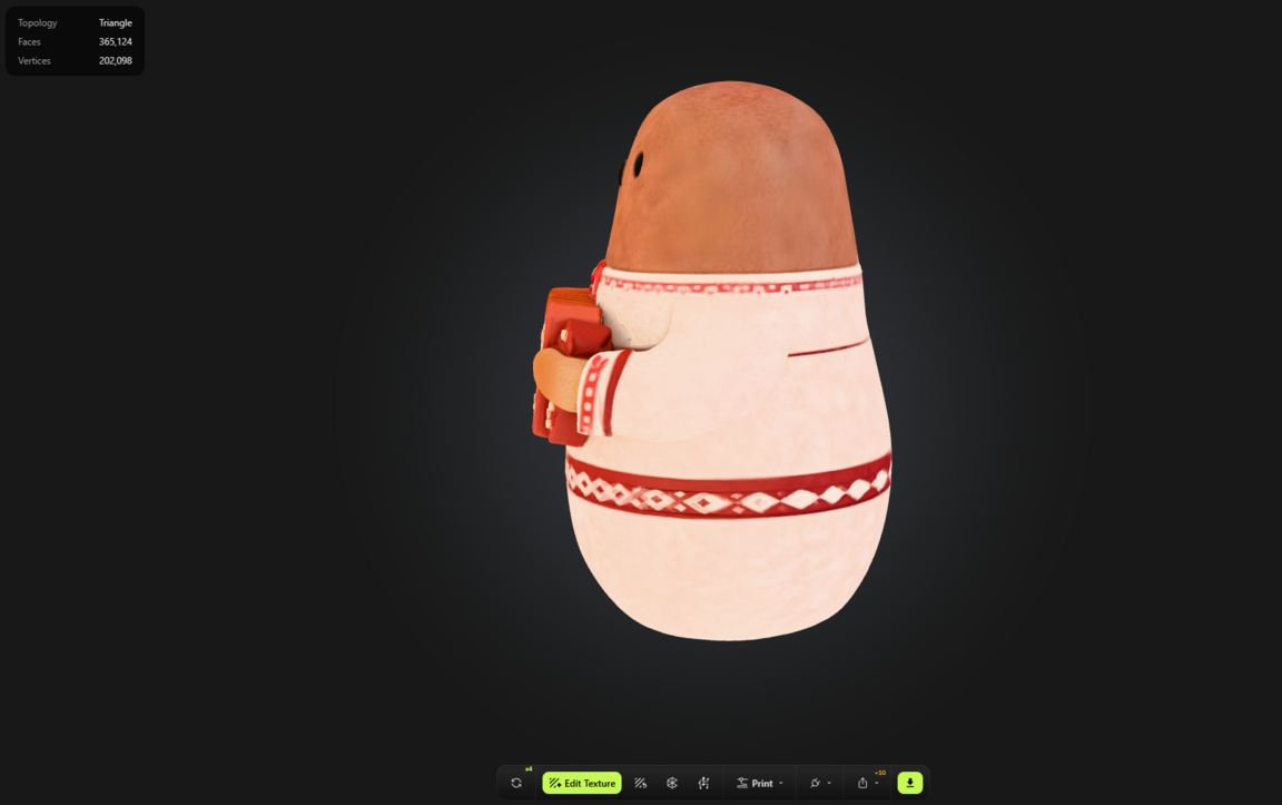 Далее, визуал этих фигур был загружен в нейросеть Meshy, где из эскизов получились объёмные модели.