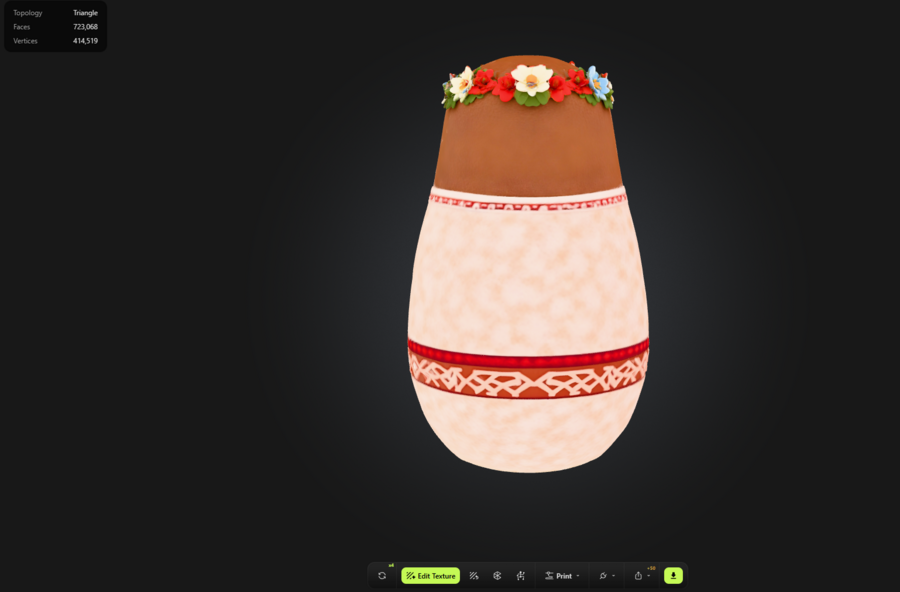 Обоснование: Фотополимерная печать обеспечивает высокую детализацию рельефа орнамента и фактуры поверхности на небольшом масштабе, что критично для декоративных объектов и сувенирной продукции.