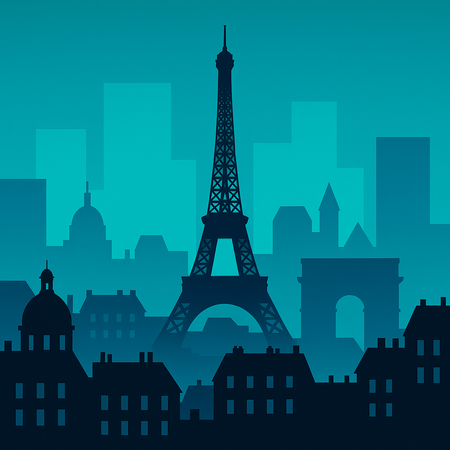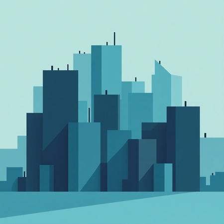 minimalist geometric vector illustration with a limited color palette of deep blue, teal, and turquoise. flat design with sharp, clean shapes and clear contrast between light and dark areas. no gradients or textures. simple architectural or structural silhouettes with layered depth and sense of perspective. calm and slightly moody atmosphere. inspired by modern digital minimalism and abstract cityscapes.