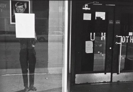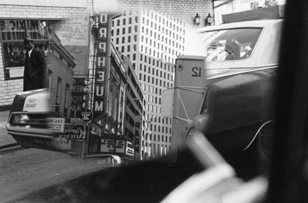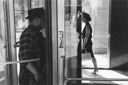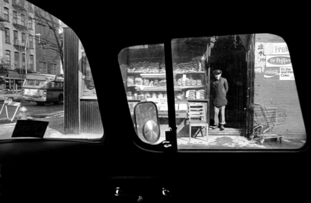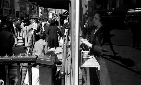 Ли Фридлендер, Без названия («Нью-Йорк»), США, 1964. Элементы витрин (например, краска на стекле) обыгрывают происходящее, управляя вниманием зрителя.